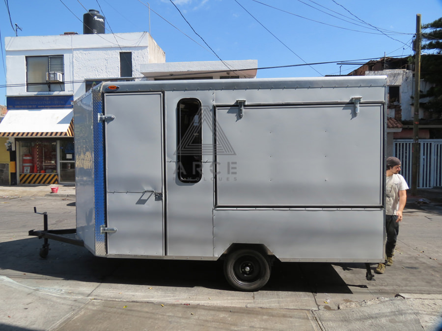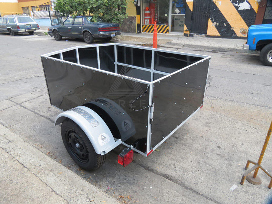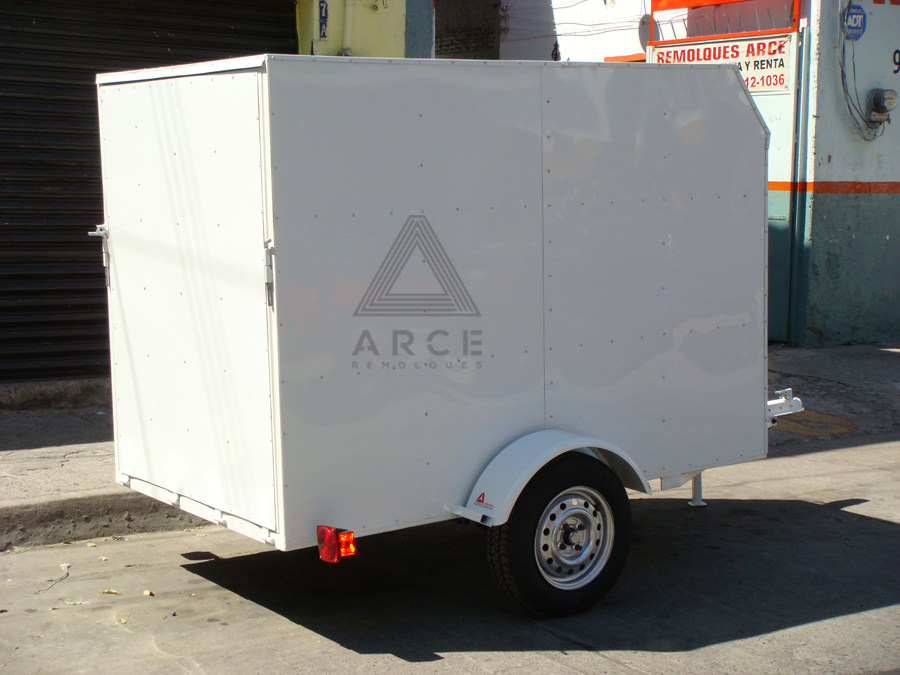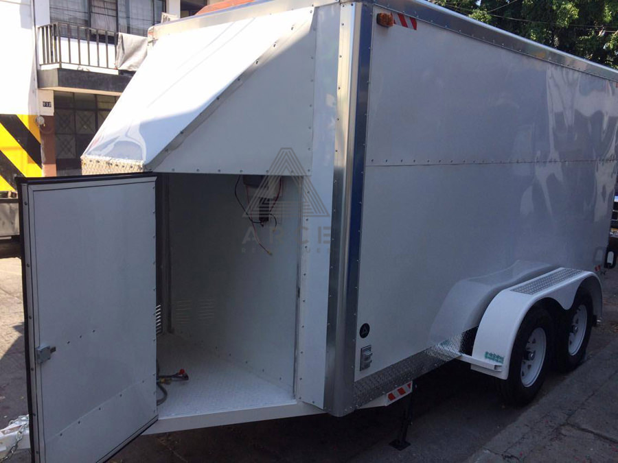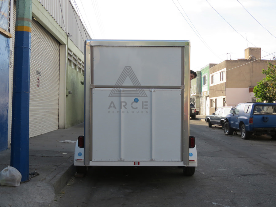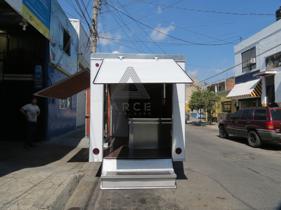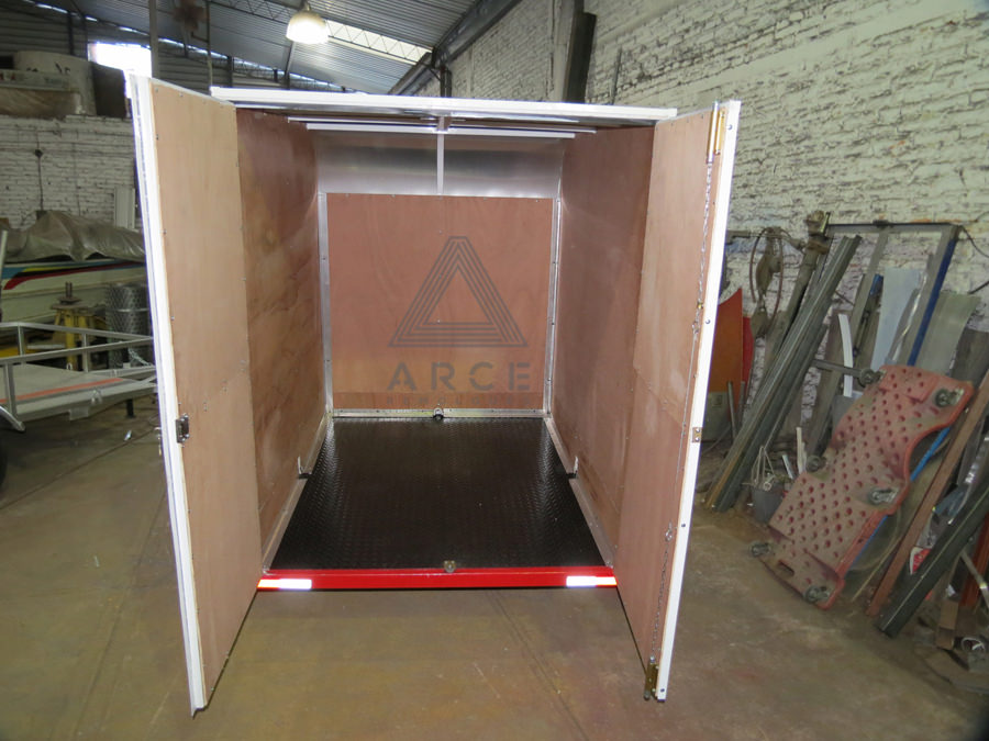 Caja abierta con piso de madera con puerta trasera a una hoja