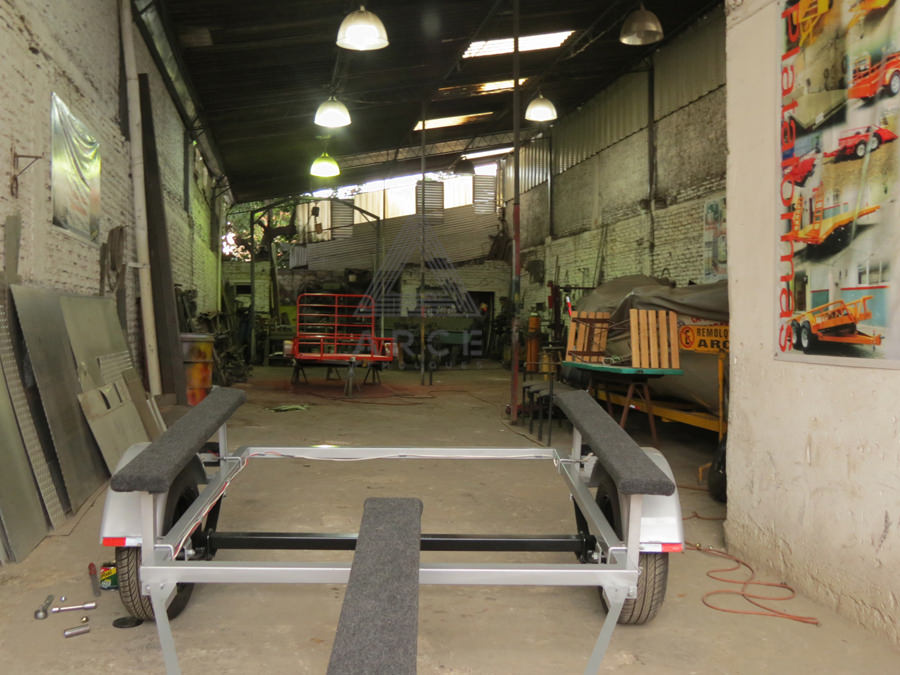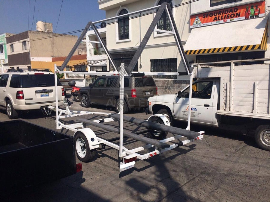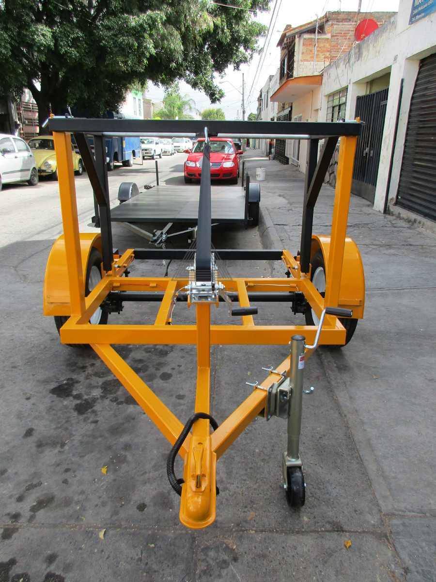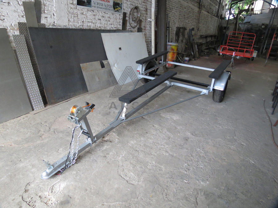 Remolque diseñado para transportar una lancha en la parte inferior y dos Kayaks en la parte superior