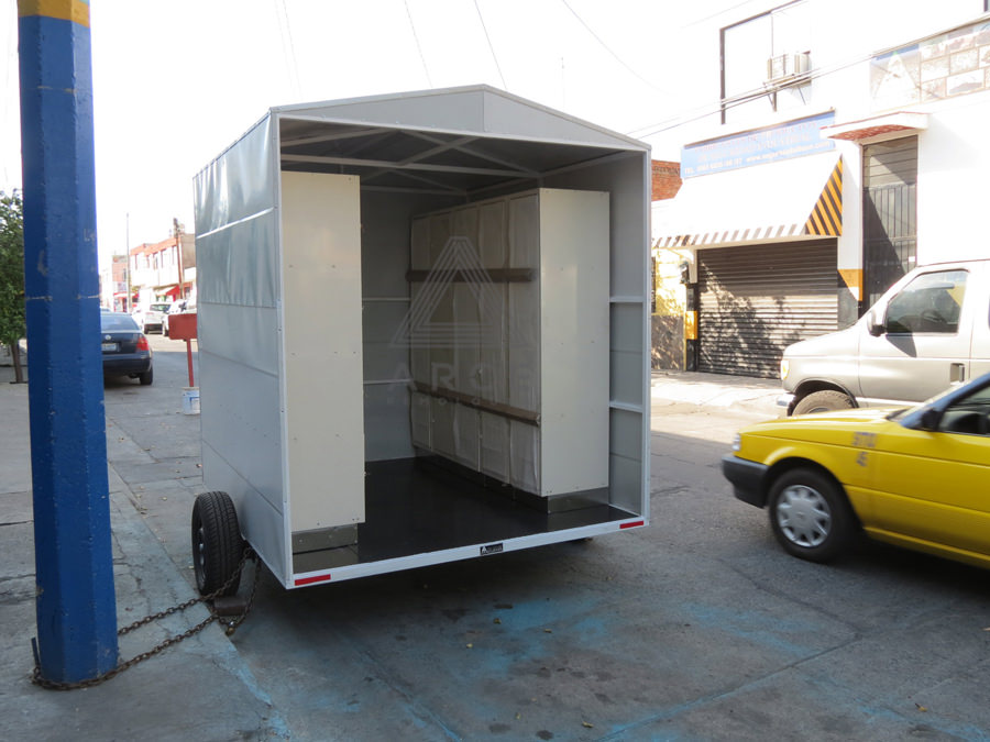 Remolque tipo caja seca fabricado en lámina pintro, sin accesorios reglamentarios solo para uso interno, fabricado para la instalación de lockers para su acceso en terrenos remotos en plantación