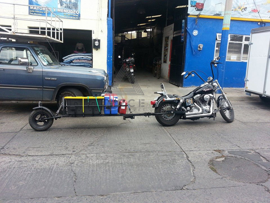 Remolque diseñado para ser tirado por un moto con capacidad para transporte de equipaje y accesorios