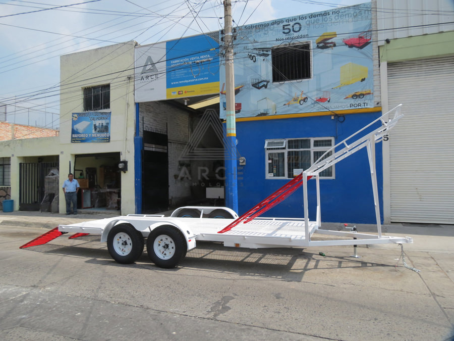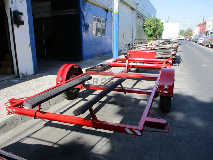 Remolque diseñado para llevar una cuatrimoto al frente y un Jetsky en la parte trasera del remolque