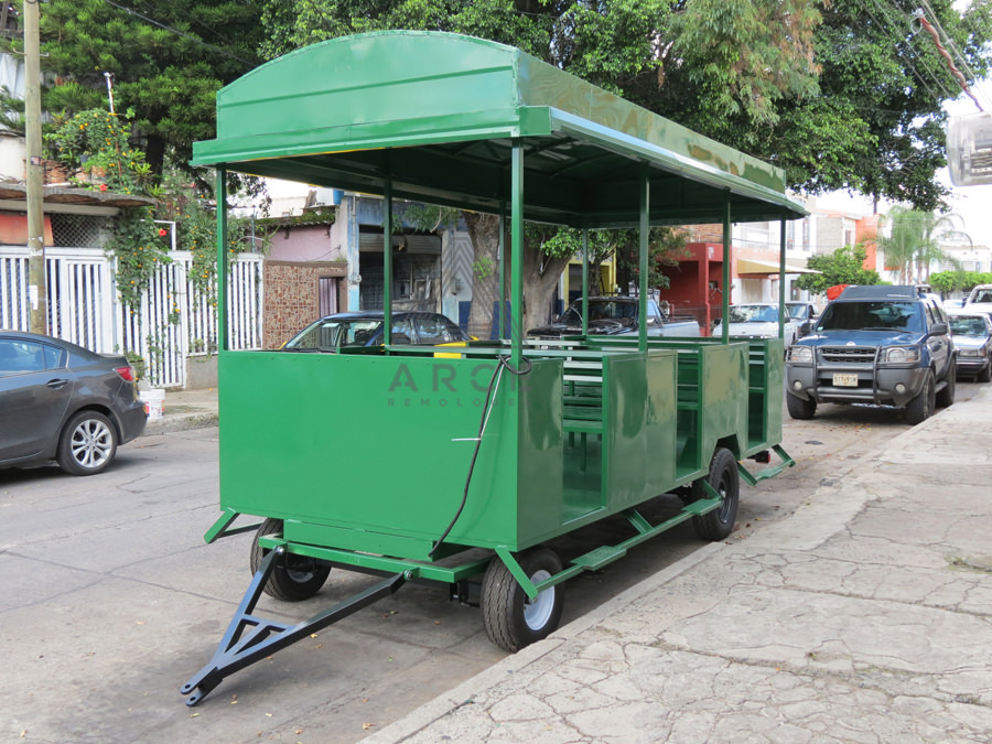 Remolque en quinta rueda diseñado para transporte turístico dentro de un fraccionamiento