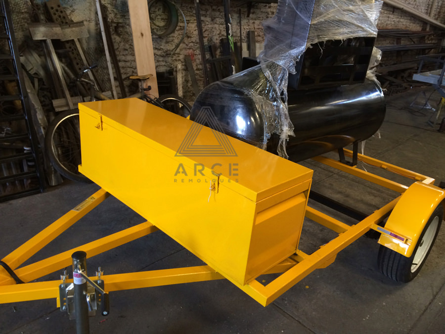 Remolque para transporte de compresor con caja de herramientas delantera utilizado para auxilio vial