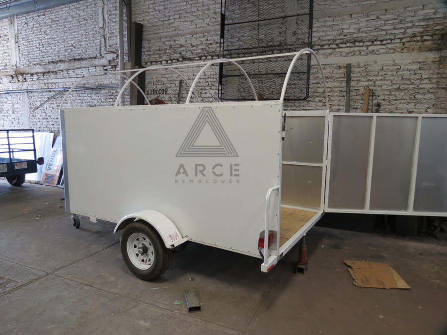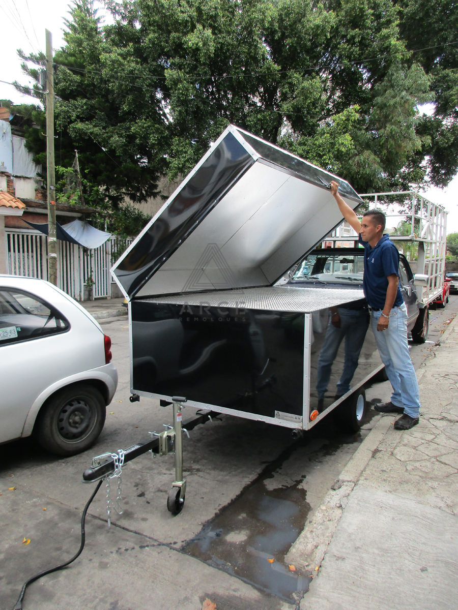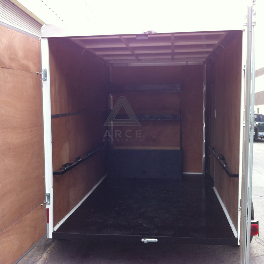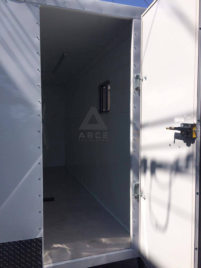 Caja abierta con piso de madera con puerta trasera a una hoja