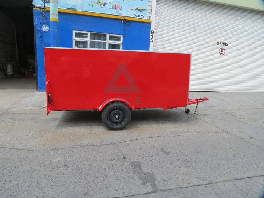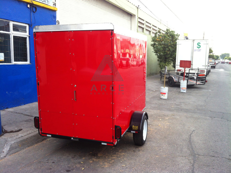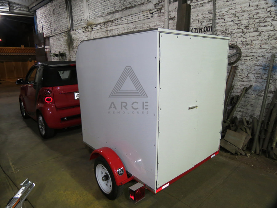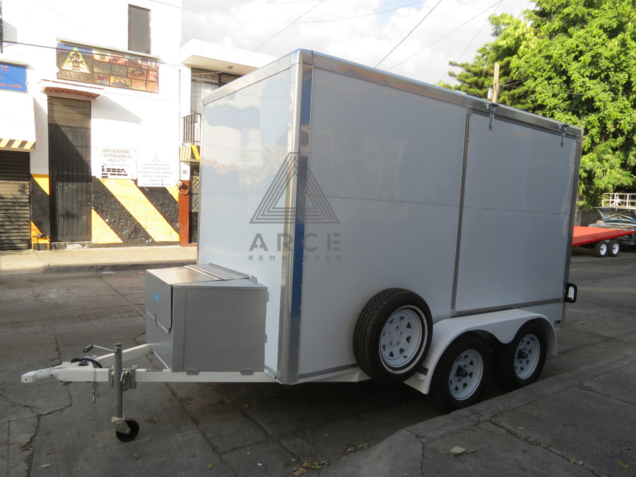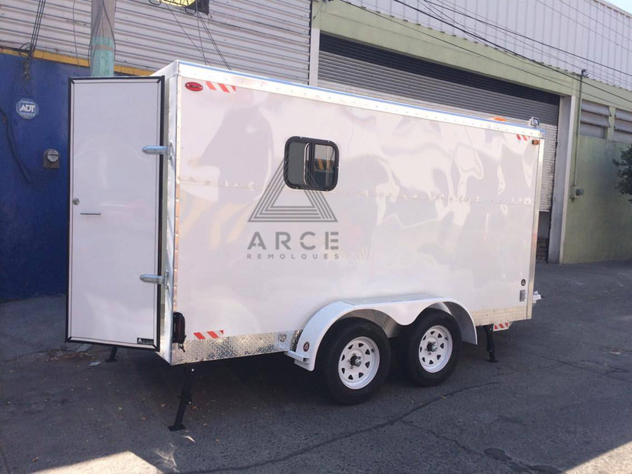 Caja abierta con piso de madera con puerta trasera a una hoja