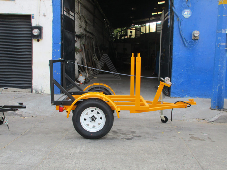 Remolque fabricado para transportar un rollo de cableado con sistema para asegurar la carga y winch para facilitar el movimiento