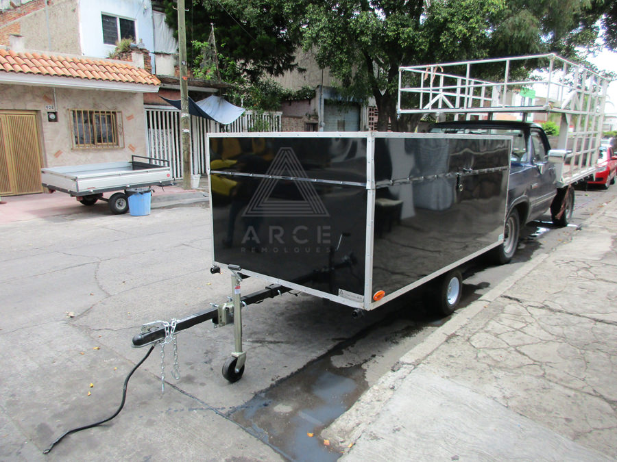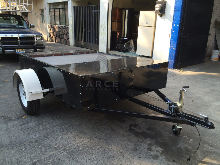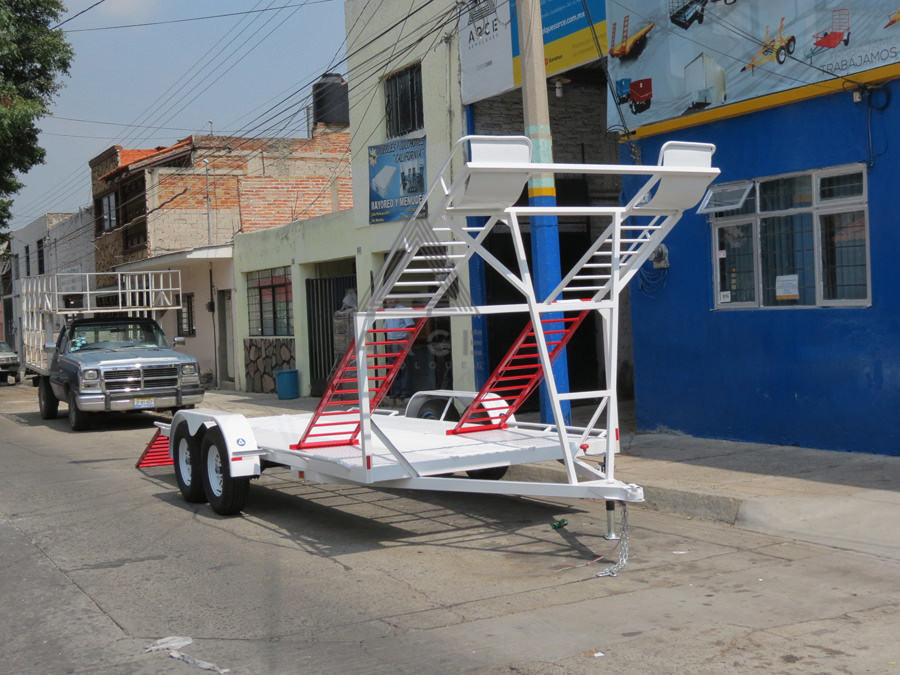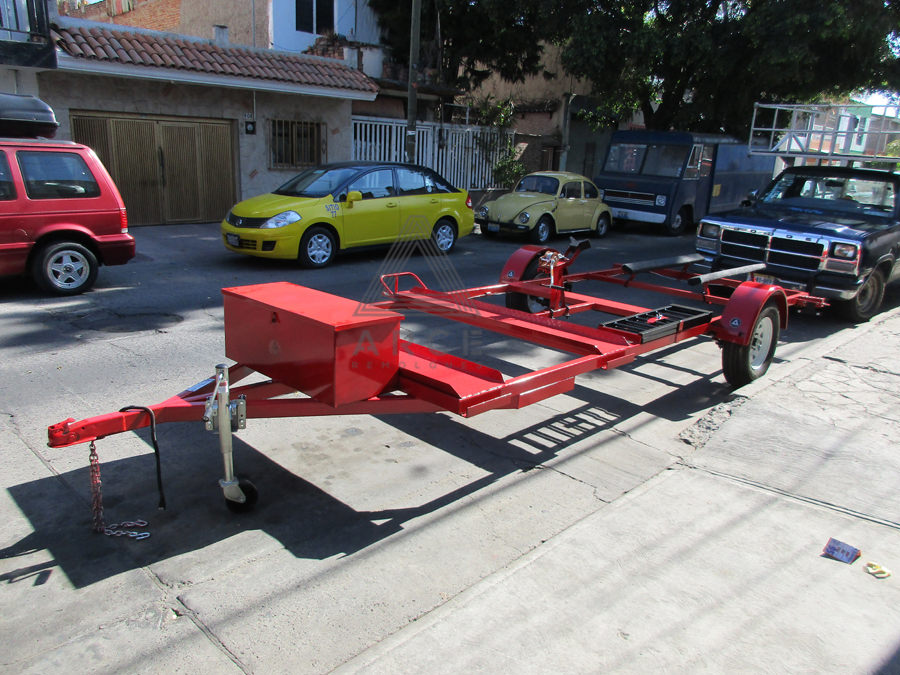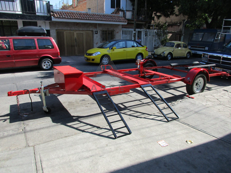 Remolque diseñado para llevar una cuatrimoto al frente y un Jetsky en la parte trasera del remolque