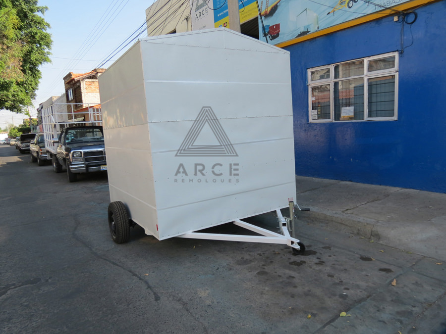 Remolque tipo caja seca fabricado en lámina pintro, sin accesorios reglamentarios solo para uso interno, fabricado para la instalación de lockers para su acceso en terrenos remotos en plantación