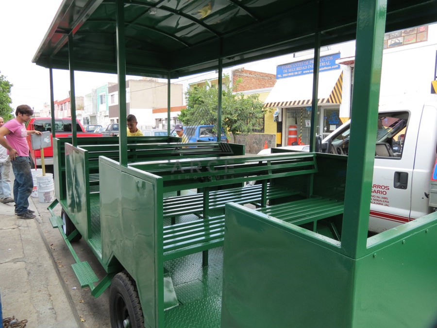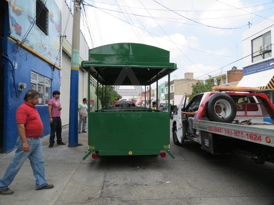 Remolque en quinta rueda diseñado para transporte turístico dentro de un fraccionamiento
